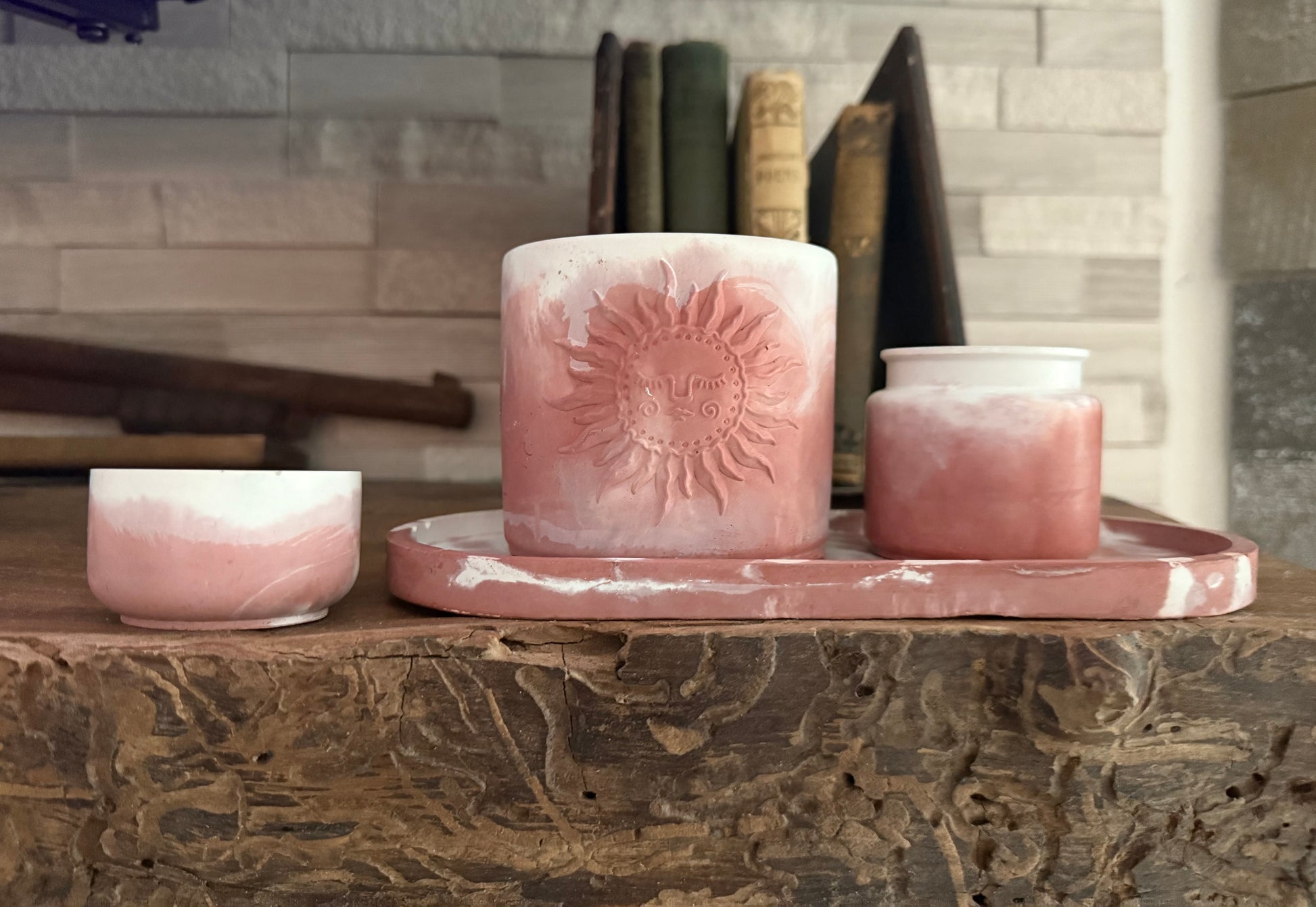 This candle comes in 10oz red and white concrete container. Once your candle has burned through, repurpose the container as a planter, desk organizer, or decorative accent—giving it a second life in your home.